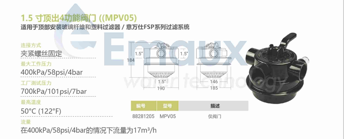 | EMAUX - 1.5"TOP MOUNT 4-WAY Valve |