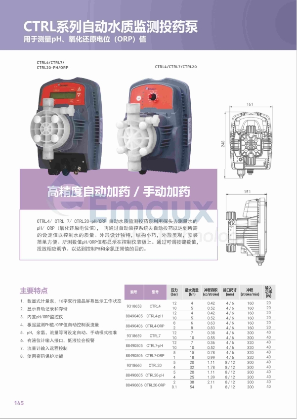 競技池CTRL4/ CTRL 7/ CTRL20-PH/ORP 自動水質(zhì)監(jiān)測投藥泵利用探頭去測量水的PH/ ORP (氧化還原電位值), 再通過自動監(jiān)控系統(tǒng)去自動投藥以達(dá)到所需的設(shè)定值以控制水的質(zhì)量。外形設(shè)計獨特,結(jié)構(gòu)小巧,外形美觀,安裝簡單方便。所測數(shù)值PH/ORP值都顯示在控制儀表板上。通過可調(diào)按鍵數(shù)值,投放相應(yīng)調(diào)節(jié)。液達(dá)到控制PH和余氯正常值的目的。