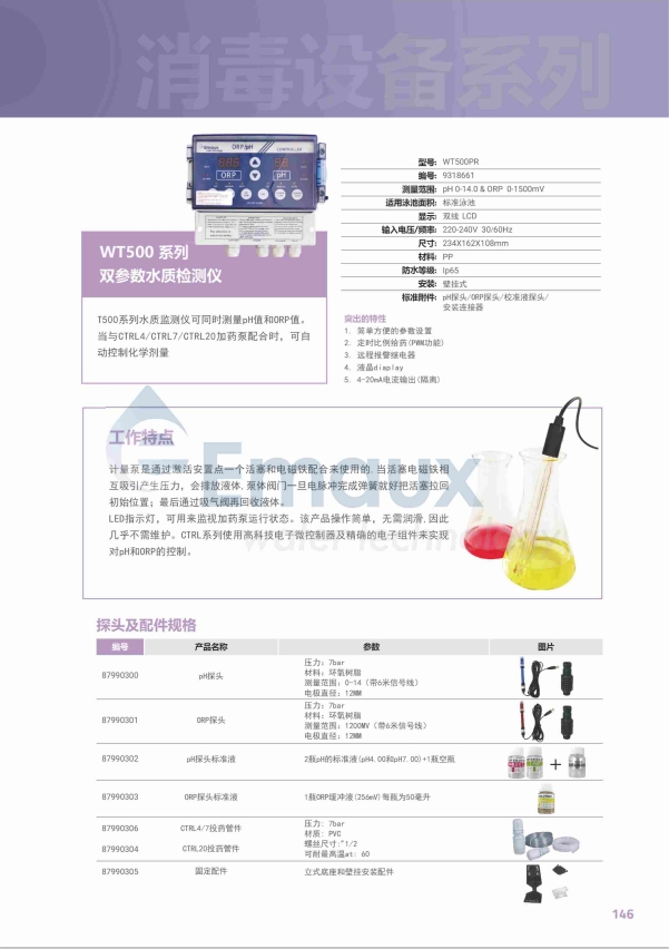 競(jìng)技池T500系列水質(zhì)監(jiān)測(cè)儀可同時(shí)測(cè)量pH值和ORP值。 當(dāng)與CTRL4/CTRL7/CTRL20加藥泵配合時(shí),可自動(dòng)控制化學(xué)劑量