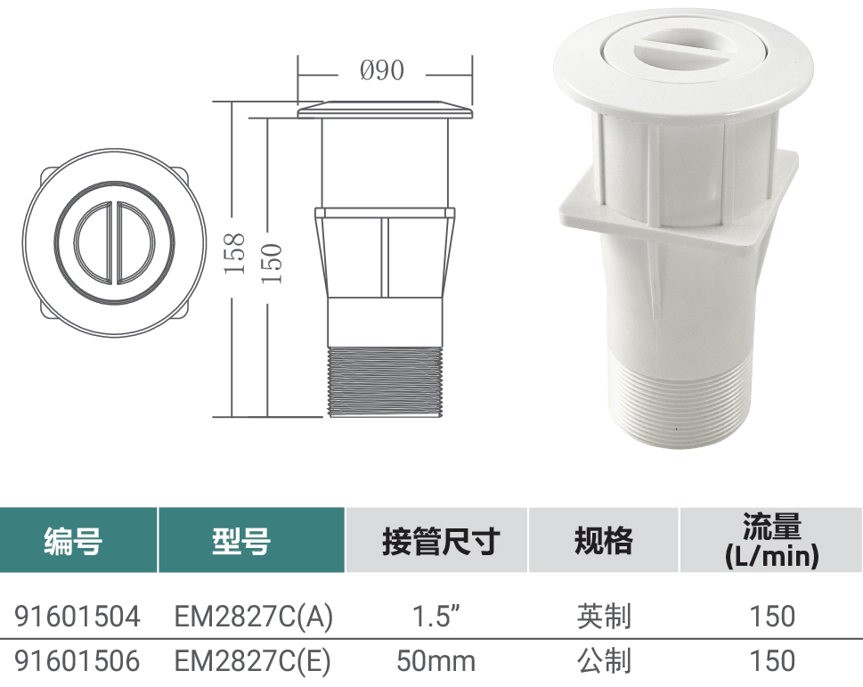 您的位置:首頁>產(chǎn)品概覽>吸污口配件>吸污口 (EM2827C} (水泥池)
