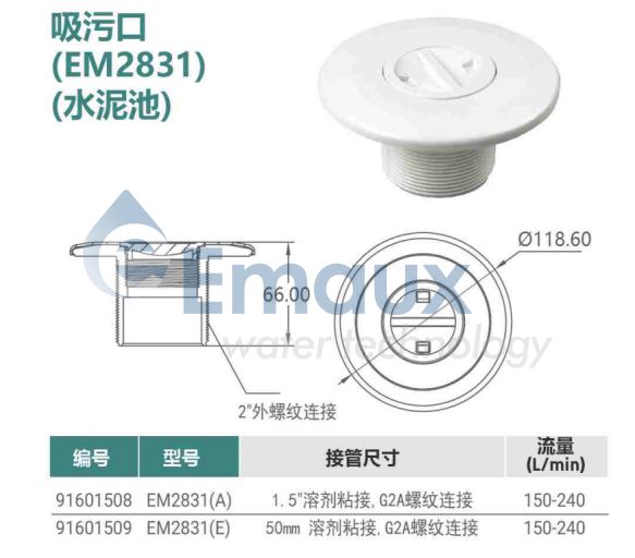 您的位置:首頁(yè)>產(chǎn)品概覽>吸污口配件>吸污口 (EM2831) 水泥池