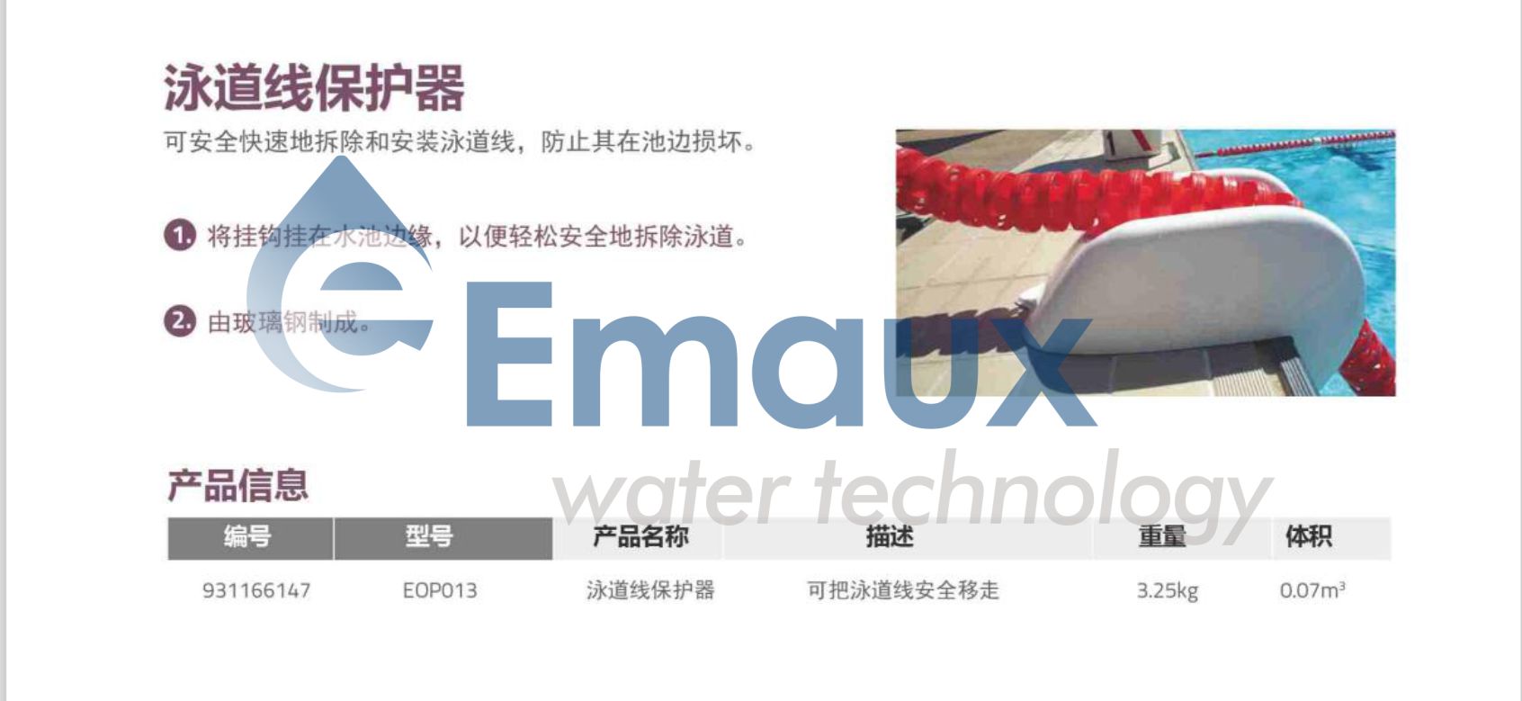 1. 將掛鉤掛在水池邊緣,以便輕松安全地拆除泳道。