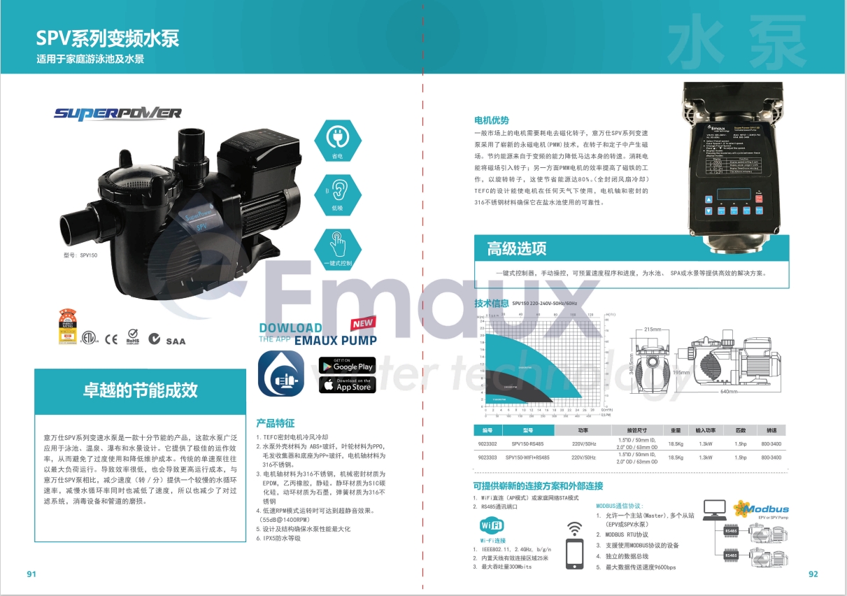 競(jìng)技池意萬(wàn)仕SPV系列變速水泵是一款十分節(jié)能的產(chǎn)品,這款水泵廣泛應(yīng)用于泳池,溫泉,瀑布和水景設(shè)計(jì)。它提供了極佳的運(yùn)作效率,從而避免了過(guò)度使用和降低維護(hù)成本。傳統(tǒng)的單速泵往往以最大負(fù)荷運(yùn)行。導(dǎo)致效率很低,也會(huì)導(dǎo)致更高運(yùn)行成本,與意萬(wàn)仕SPV泵相比,減少速度(轉(zhuǎn)/分)提供一個(gè)較慢的水循環(huán)速率,減慢水循環(huán)率同時(shí)也減低了速度,所以也減少了對(duì)過(guò)濾系統(tǒng),消毒設(shè)備和管道的磨損。