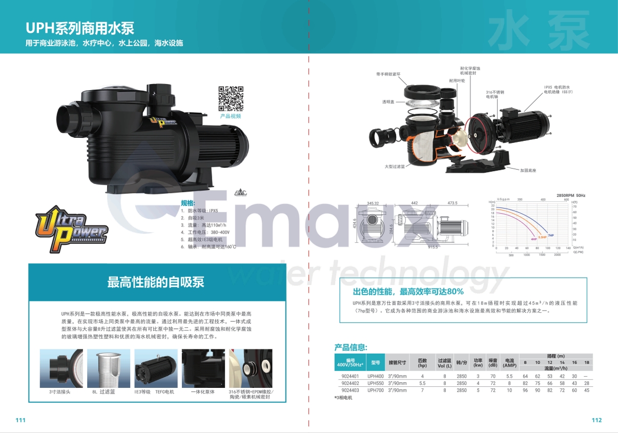 UPH系列是一款極高性能水泵,極高性能的自吸水泵。能達(dá)到在市場(chǎng)中同類(lèi)泵中最高質(zhì)量,在實(shí)現(xiàn)市場(chǎng)上同類(lèi)泵中最高的流量。通過(guò)利用最先進(jìn)的工程技術(shù),一體式成型泵體與大容量8升過(guò)濾籃使其在所有可比泵中獨(dú)一無(wú)二。采用耐腐蝕和耐化學(xué)腐蝕的玻璃增強(qiáng)熱塑性塑料和優(yōu)質(zhì)的海水機(jī)械密封,確保長(zhǎng)壽命的工作。