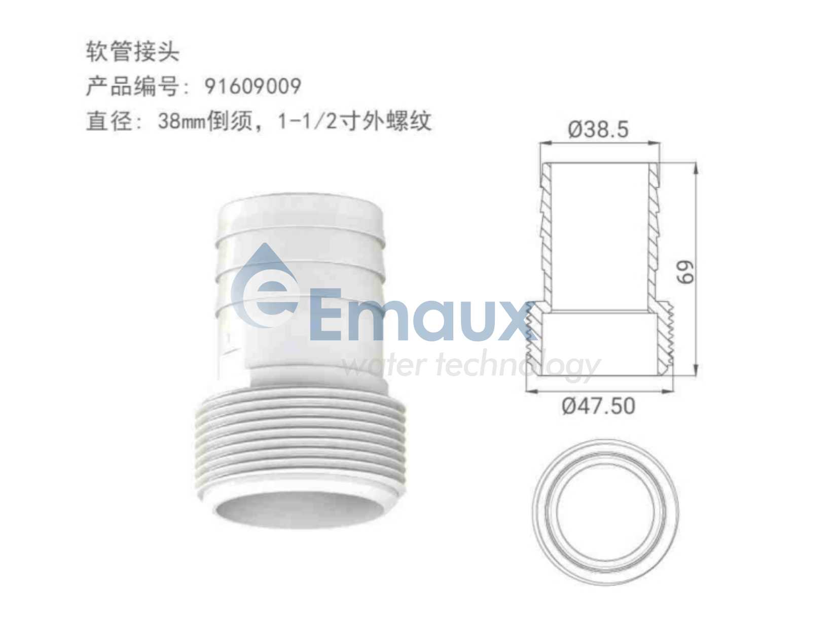 競技池直徑: 38mm倒須,1-1/2寸外螺紋