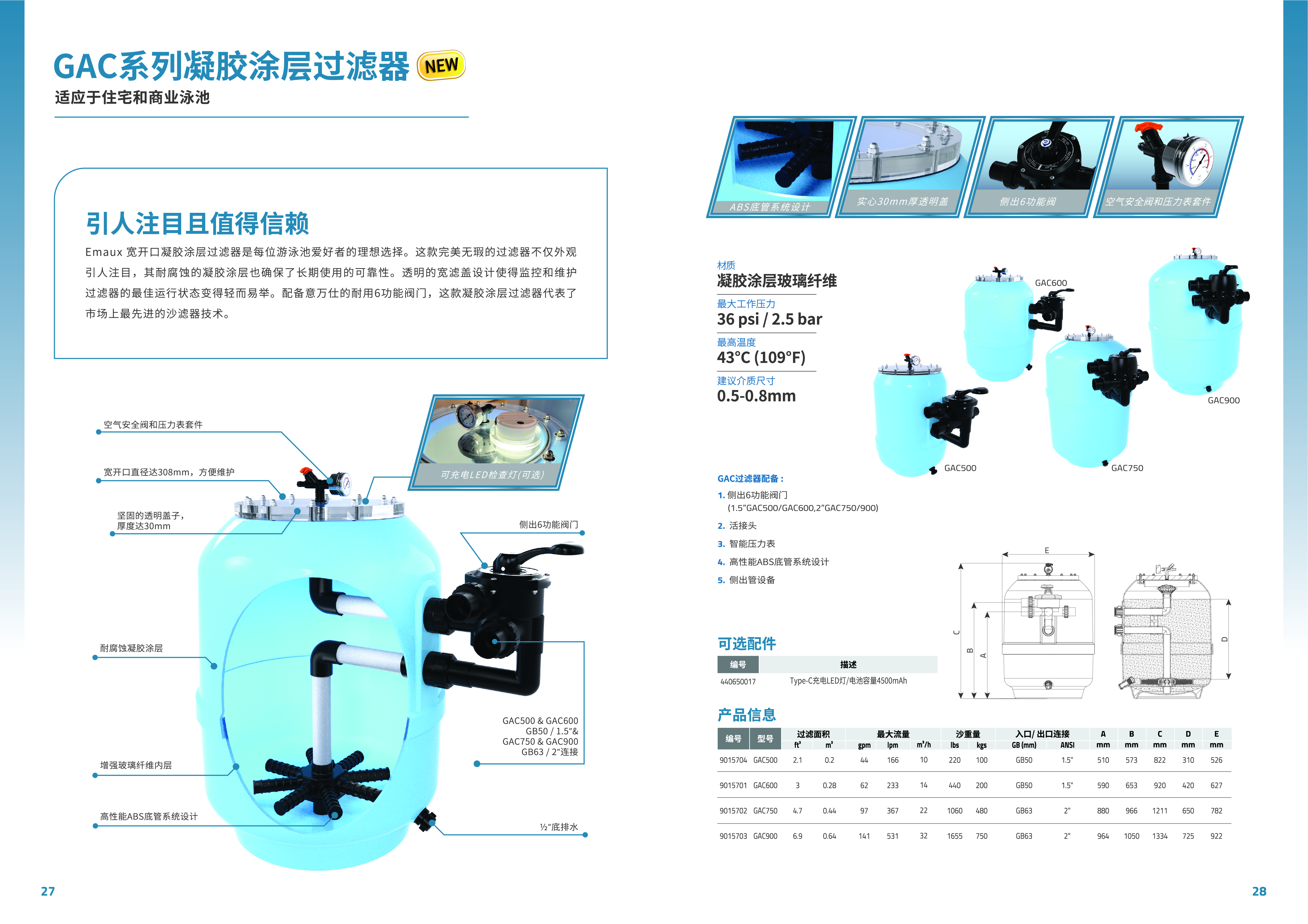 競(jìng)技池Emaux 寬開口凝膠涂層過(guò)濾器是每位游泳池愛(ài)好者的理想選擇。這款完美無(wú)瑕的過(guò)濾器不僅外觀 引人注目,其耐腐蝕的凝膠涂層也確保了長(zhǎng)期使用的可靠性。透明的寬濾蓋設(shè)計(jì)使得監(jiān)控和維護(hù) 過(guò)濾器的最佳運(yùn)行狀態(tài)變得輕而易舉。配備意萬(wàn)仕的耐用6功能閥門,這款凝膠涂層過(guò)濾器代表了 市場(chǎng)上最先進(jìn)的沙濾器技術(shù)。