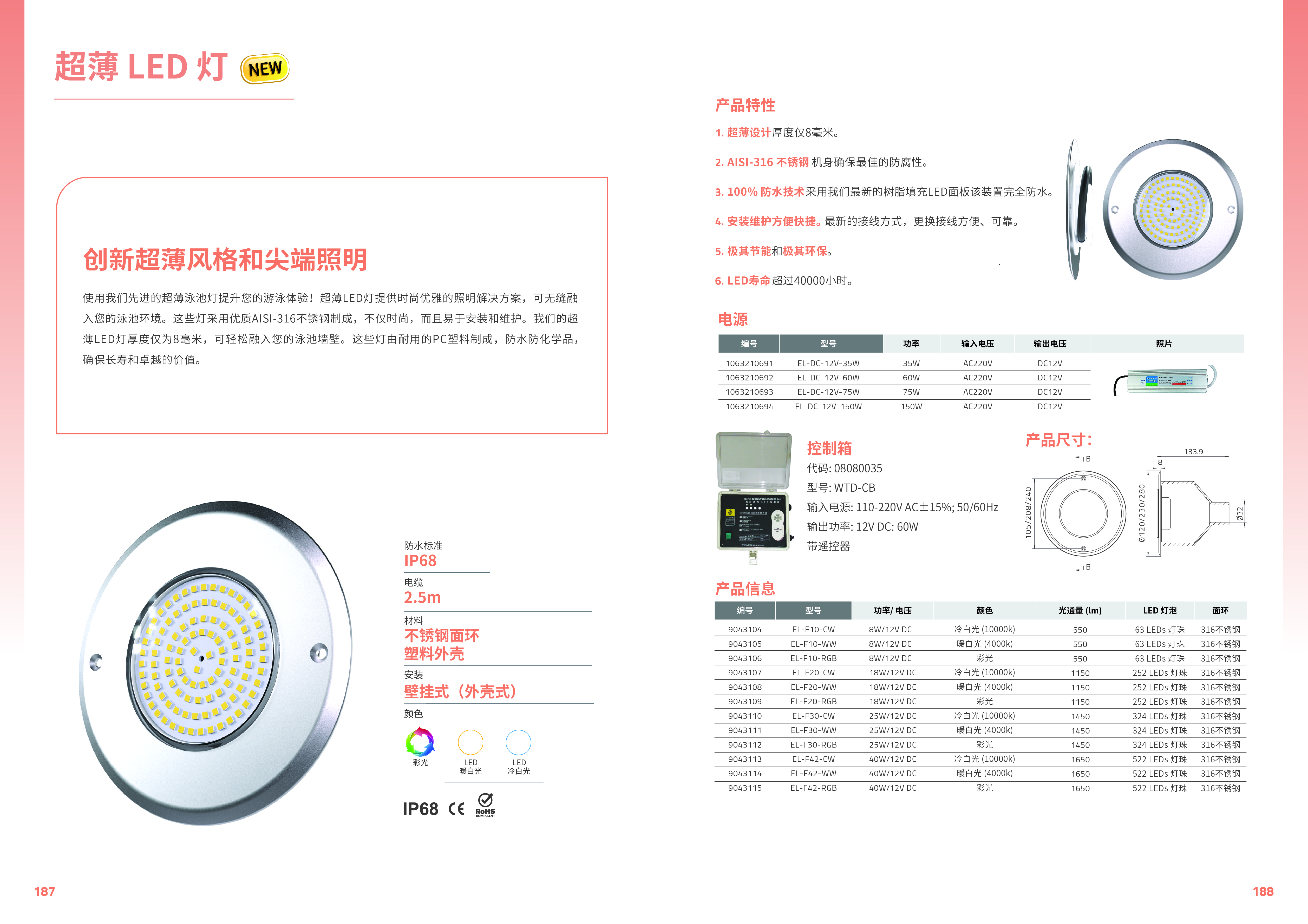 競技池使用我們先進(jìn)的超薄泳池?zé)籼嵘挠斡倔w驗!超薄LED燈提供時尚優(yōu)雅的照明解決方案,可?縫融 入您的泳池環(huán)境。這些燈采用優(yōu)質(zhì)AISI?316不銹鋼制成,不僅時尚,?且易于安裝和維護(hù)。我們的超 薄LED燈厚度僅為8毫?,可輕松融入您的泳池墻壁。這些燈由耐用的PC塑料制成,防水防化學(xué)品, 確保長壽和卓越的價值。