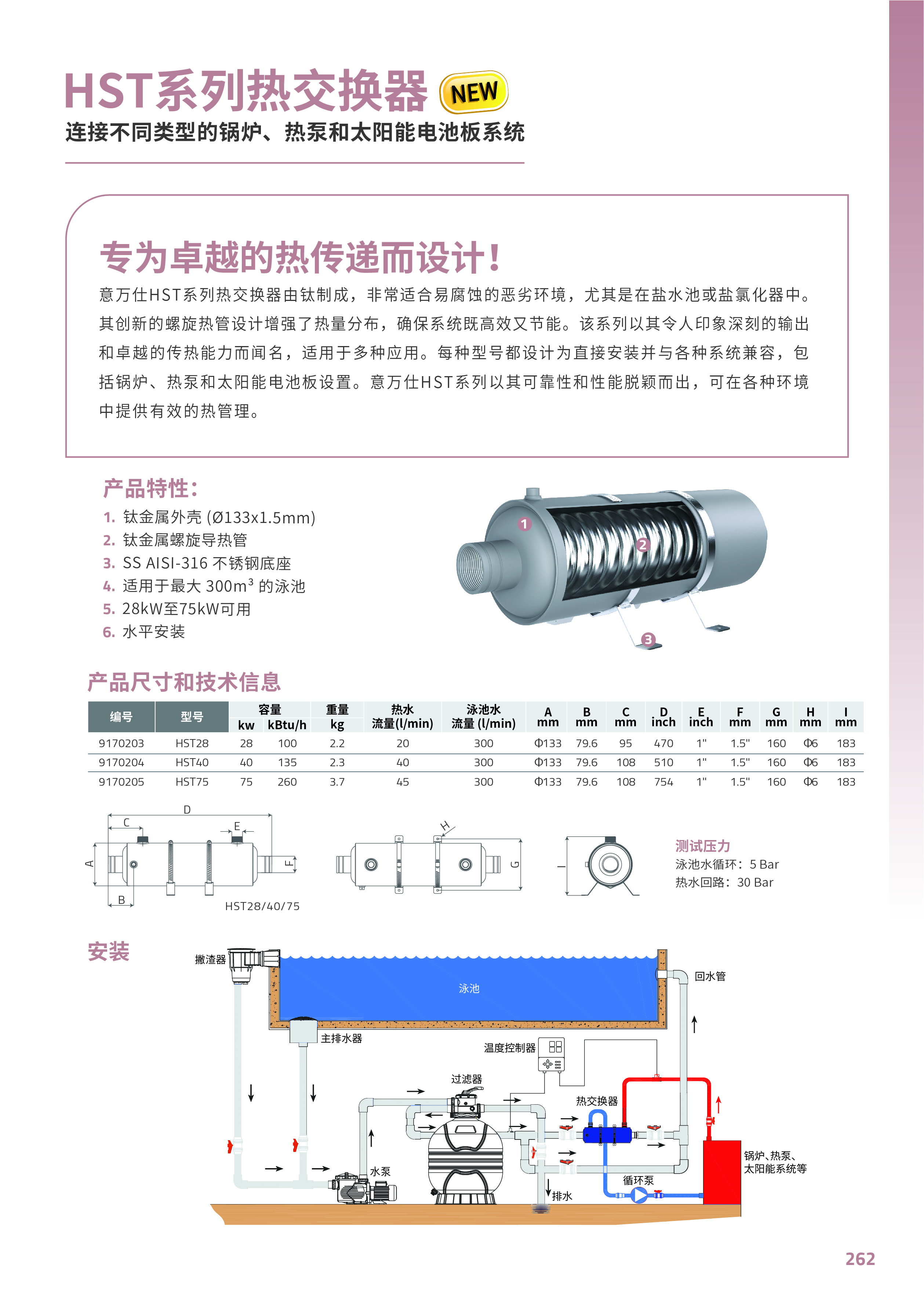 競技池意萬仕HST系列熱交換器由鈦制成,?常適合易腐蝕的惡劣環(huán)境,尤其是在鹽水池或鹽氯化器中。 其創(chuàng)新的螺旋熱管設(shè)計增強(qiáng)了熱量分布,確保系統(tǒng)既?效?節(jié)能。該系列以其令?印象深刻的輸出 和卓越的傳熱能力而聞名,適用于多種應(yīng)用。每種型號都設(shè)計為直接安裝并與各種系統(tǒng)兼容,包 括鍋爐、熱泵和太陽能電池板設(shè)置。意萬仕HST系列以其可靠性和性能脫穎而出,可在各種環(huán)境 中提供有效的熱管理。