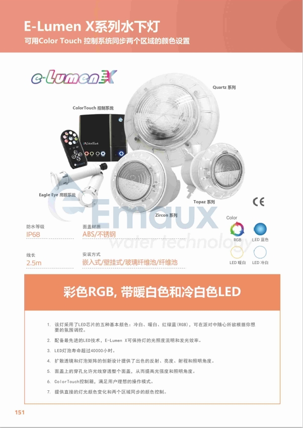 1. 該燈采用了LED芯片的五種基本顏色:冷白、暖白、紅綠藍(lán)(RGB), 可在派對中隨心所欲根據(jù)你想要的氛圍調(diào)控。 2. 配備最先進(jìn)的LED技術(shù),E-Lumen X可保持燈的光照度流明和發(fā)光效率。 3. LED燈泡壽命超過40000小時。 4. 擴(kuò)散透鏡和燈泡矩陣的創(chuàng)新設(shè)計(jì)提供了出色的反射、亮度、射程和照明角度。 5. 面蓋上的穿孔允許光線穿透整個面蓋,從而提高光強(qiáng)度和照明角度。 6. ColorTouch控制箱,滿足用戶理想的操作模式。