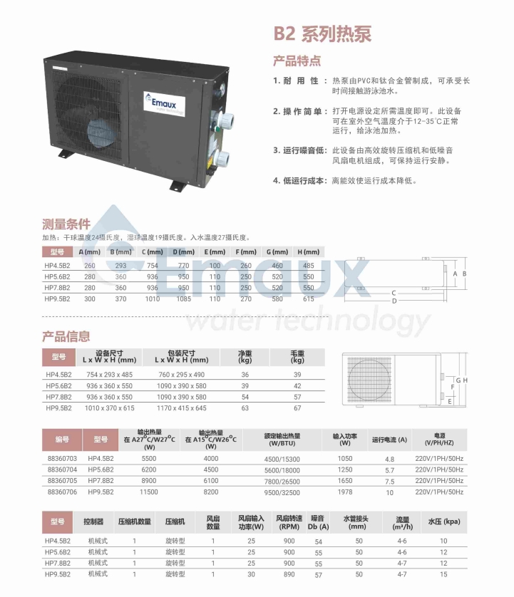 2. 操作簡單:打開電源設(shè)定所需溫度即可。此設(shè)備可在室外空氣溫度介于12-35℃正常運(yùn)行,給泳池加熱。
