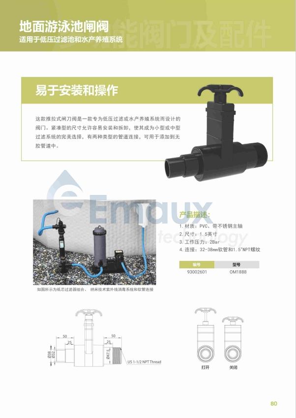 競(jìng)技池這款推拉式閘刀閥是一款專為低壓過(guò)濾或水產(chǎn)養(yǎng)殖系統(tǒng)而設(shè)計(jì)的閥門。緊湊型的尺寸允許容易安裝和拆卸,使其成為小型或中型膠管道中。過(guò)濾系統(tǒng)的完美選擇,有兩種類型的管道連接,可用于添加到