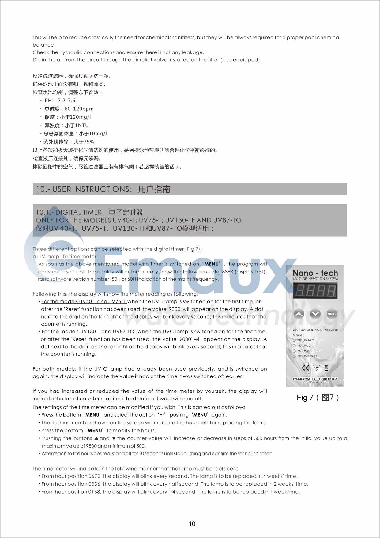 競技池Nano-Tech UV-C配定時器包括一個集成定時器,可準(zhǔn)確監(jiān)控紫外線燈的操作時間及提醒更換燈管。