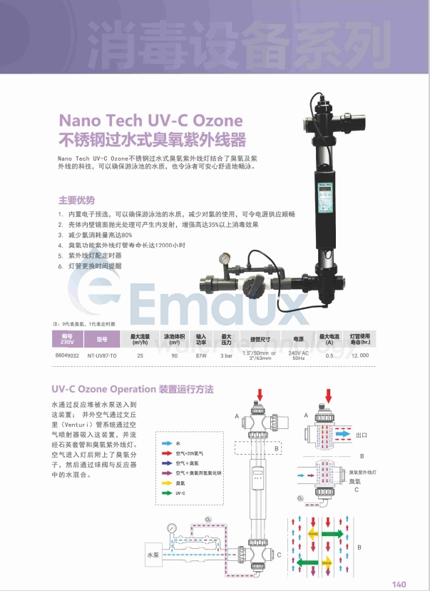 競技池Nano Tech UV-C Ozone不銹鋼過水式臭氧紫外線燈結(jié)合了臭氧及紫外線的科技,可以確保游泳池的水質(zhì),也令泳者可安心舒適地暢泳。
