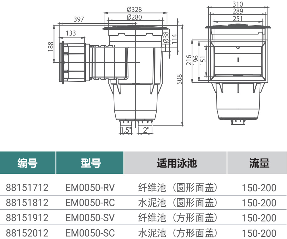 | Product Name: EM0050 Wide Mouth Wall Skimmer (Concrete Pool & Vinyl Pool) | |||