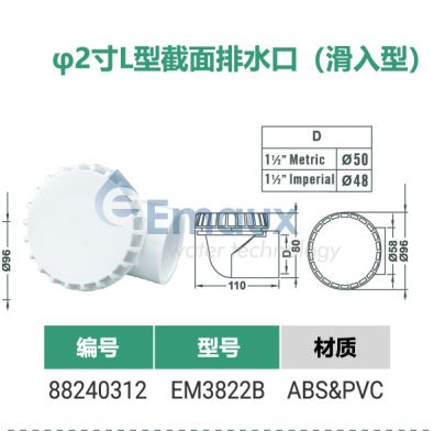 您的位置:首頁(yè)>產(chǎn)品概覽>SPA配件>φ2寸L型截面排水口(滑入型)