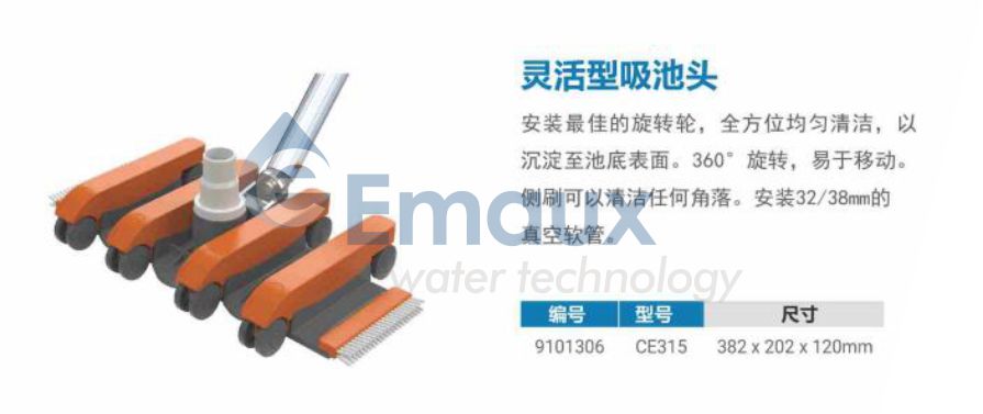 競(jìng)技池安裝最佳的旋轉(zhuǎn)輪,全方位均勻清潔,以沉淀至池底表面。360°旋轉(zhuǎn),易于移動(dòng)。側(cè)刷可以清潔任何角落。安裝32/38 mm 的真空軟管