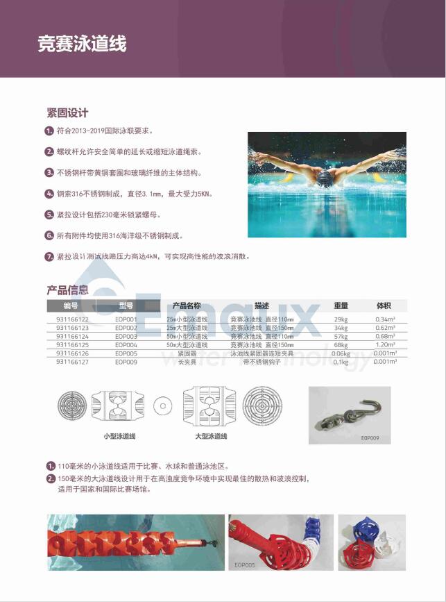 2. 螺紋桿允許安全簡單的延長或縮短泳道繩索。