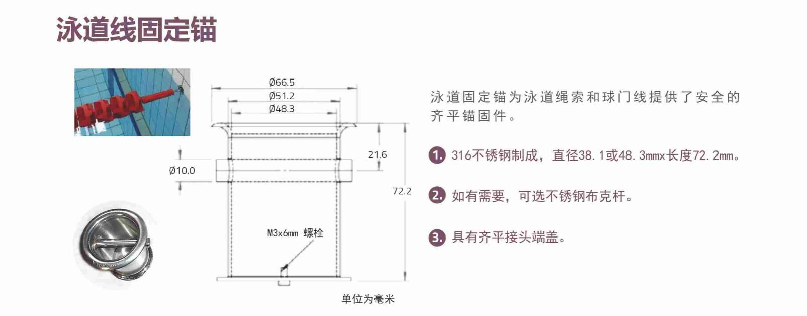 競(jìng)技池1. 316不銹鋼制成,直徑38.1或48.3mmx長度72.2mm。