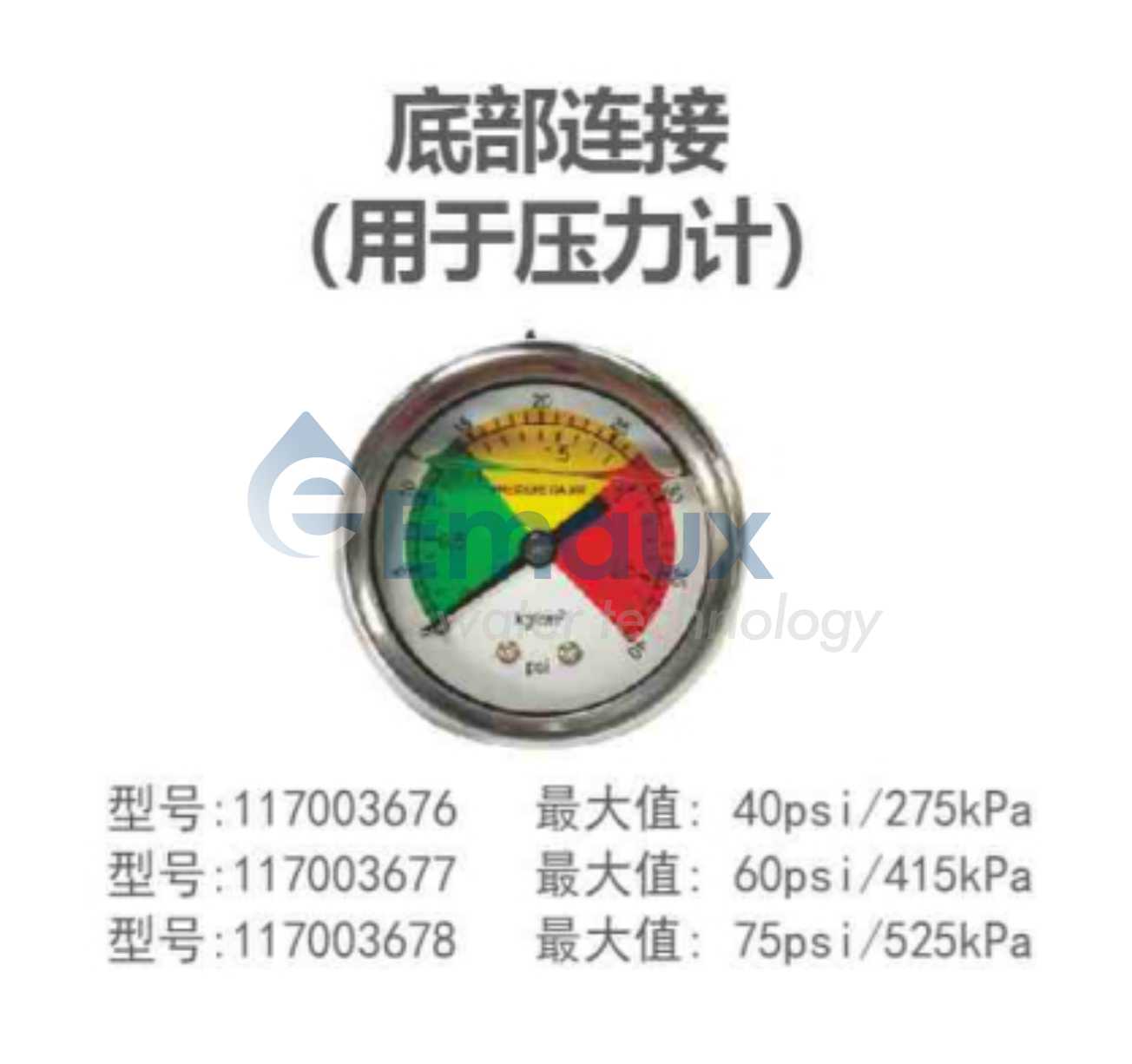 底部連接(用于壓力計(jì)) 不銹鋼油壓表